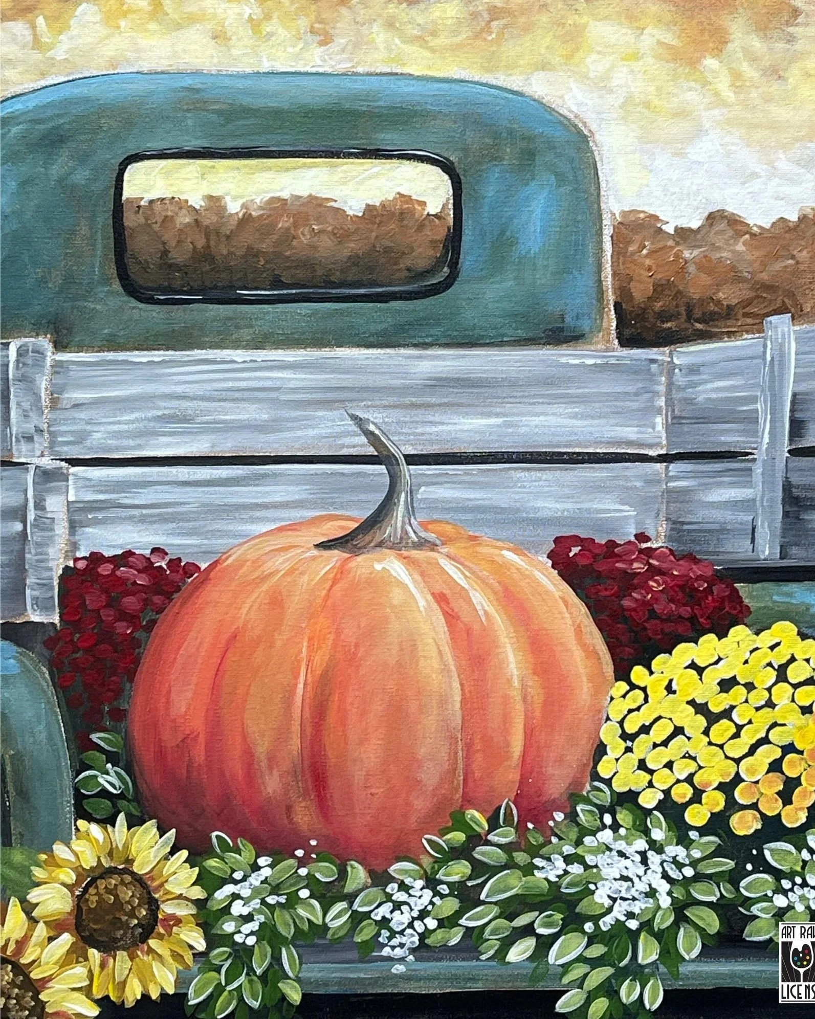 A classic, you are going to want to get this one out every fall! Pre-traced canvas for your ease. Ticket sales are limited to just 14 seats and they sell out regularly, so be sure you and your friends sign up early. Local DeWitt Artist Ashley will be teaching you step by step for a very fun evening!